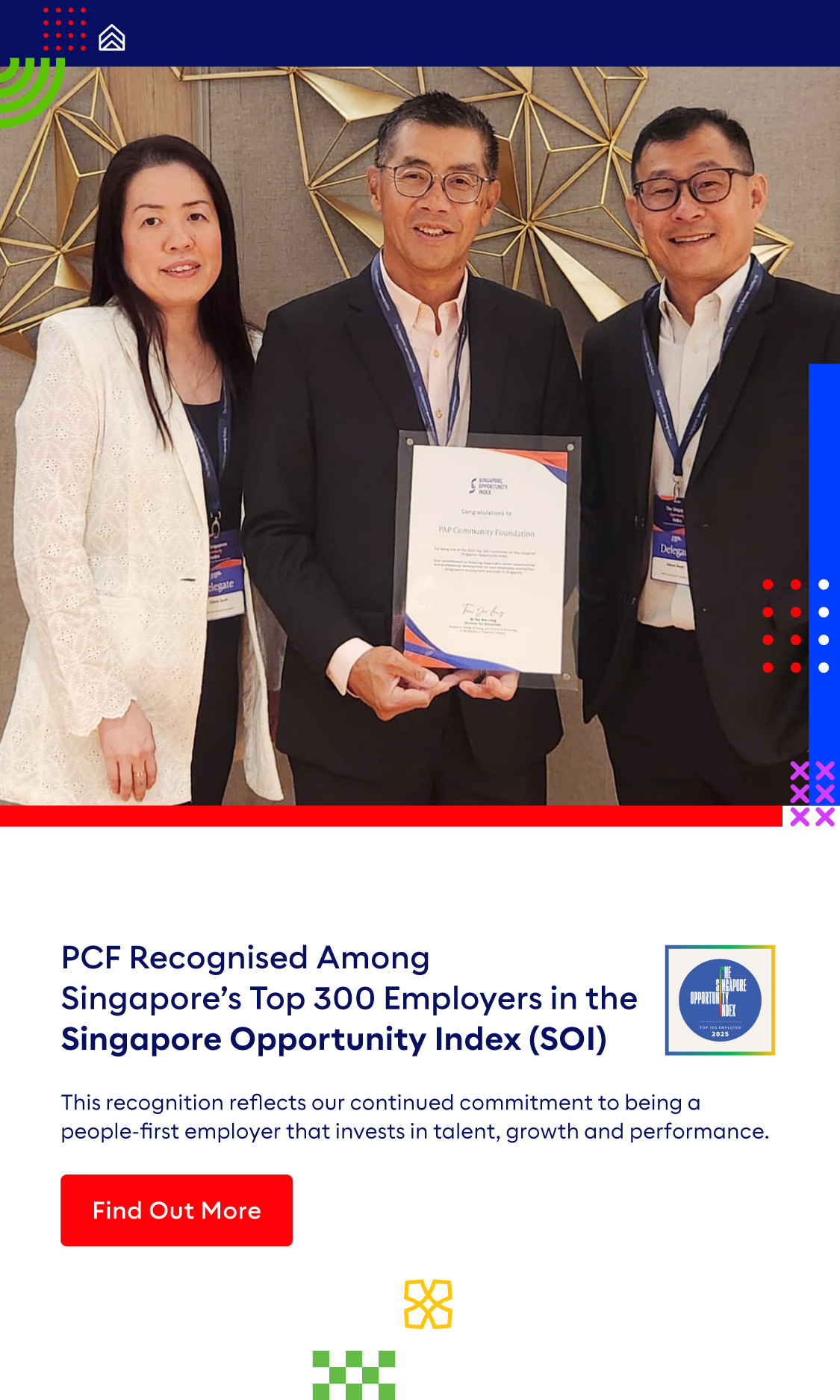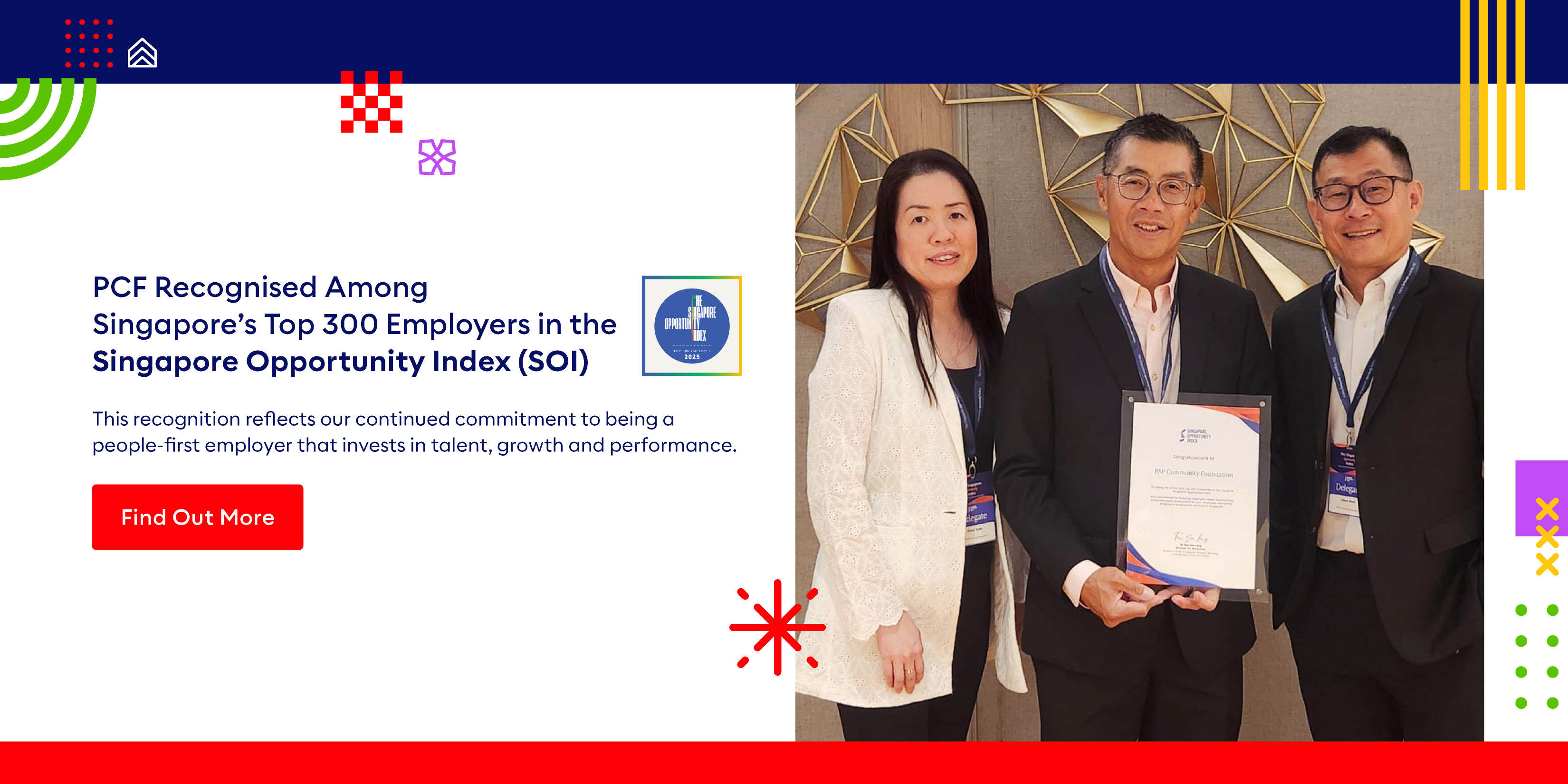In 2020, PCF was honoured to be recognised as a Great Place to Work®️ and Great Place to Learn™️ by the Great Place to Work Institute. In 2021, PCF clinched 1st place in the 2021 list of Asia’s Best Workplaces (Large category) compiled by the Great Place To Work Institute.