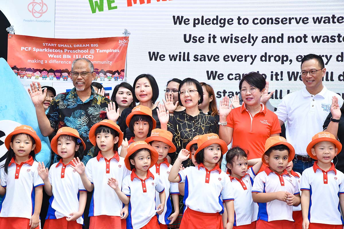 During the event, Minister Masagos Zulkifli toured the various activity booths and led PCF Sparkletots children to recite the “We Make Every Drop Count” Pledge. Some 400 pre- schoolers from PCF Sparkletots North East District 3 were present, together with family and friends to join in the festivities and pledge their support for Singapore World Water Day. PCF Sparkletots children put together performances and showcased their water conservation efforts. At the event, prizes were also given out to winners of the “We Make Every Drop Count” Colouring Contest. Through this event, PCF Sparkletots aims to raise awareness on the importance of water in our community.