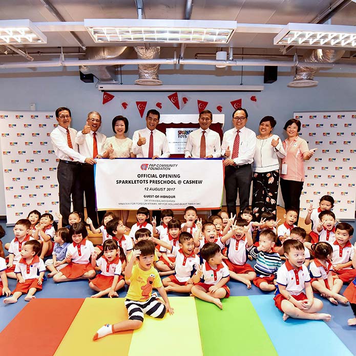Singapore, 12 August 2017 – PCF Sparkletots @ Cashew was officially unveiled today by Guest-of-Honour, Dr Vivian Balakrishnan, Member of Parliament for Holland-Bukit Timah GRC (Cashew) and Minister for Foreign Affairs. Like all other PCF Sparkletots, PCF Sparkletots @ Cashew’s learning approach is anchored on the Sparkletots Curriculum, which consists of six learning areas: language and literacy, aesthetic and creative expression, discovery of the world, motor skills development, numeracy, and social and emotional development. This curriculum is aligned with the Ministry of Education’s Nurturing Early Learners framework.